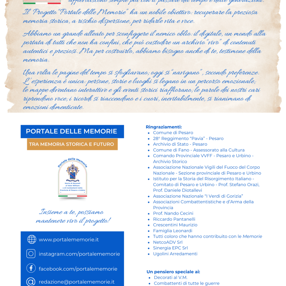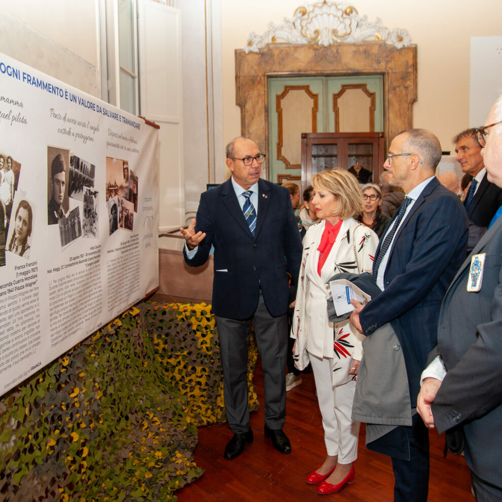 Pannelli di presentazione del Progetto “Portale delle Memorie” (chi, cosa, come, dove, quando e perché), i pannelli dei temi intrecciati (famiglie, persone, racconti e memorie), i pannelli del percorso spazio-temporale (i territori nei periodi storici).